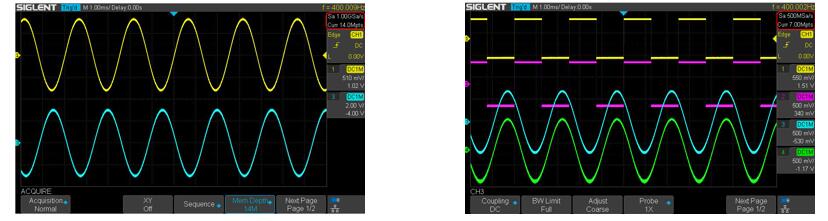 通道交织时采样率 1GSa/s ;通道全部开启,每通道采样率 500MSa/s