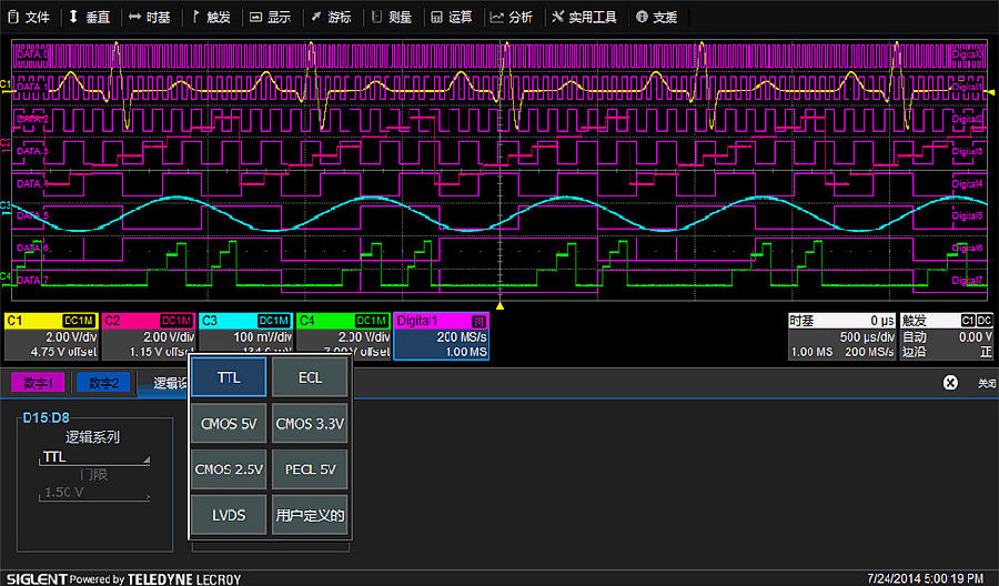 数字通道提供多种逻辑电平的选择,用户可根据实际情况灵活选用(MSO)