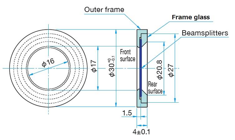 基板上镀有按1:1分束透过光和反射光的多层电介质膜。