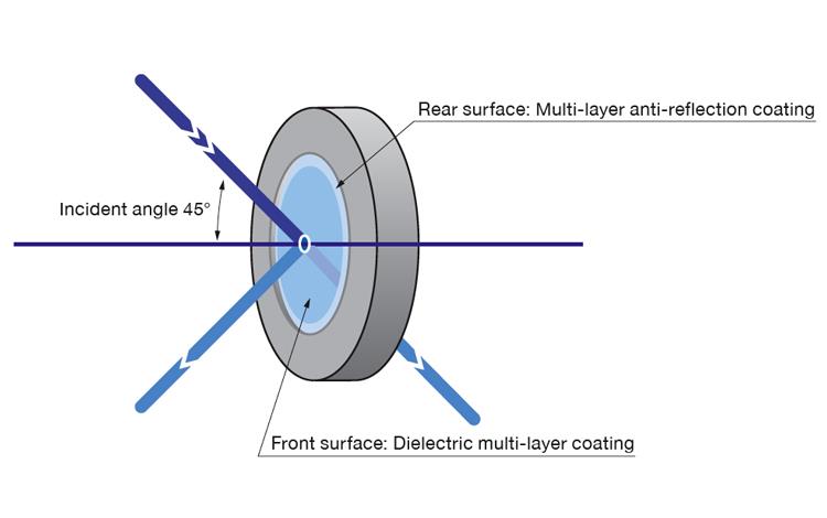 正面有多层电介质膜,反面有防反射膜,几乎没有光量的损失。