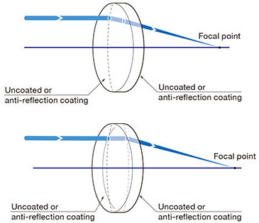 入射光束有方向性。请务必从凸面侧入射。否则球差大,光斑变大,成像会模糊。