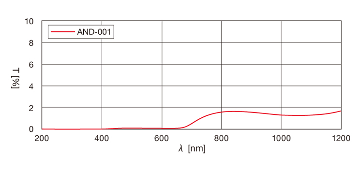 吸收型中性滤光片(可见光·带框)由于是吸收型滤光片,反射引起的杂散光很少,而且,透过光的波长特性不会随光量的减少发生大的变化。