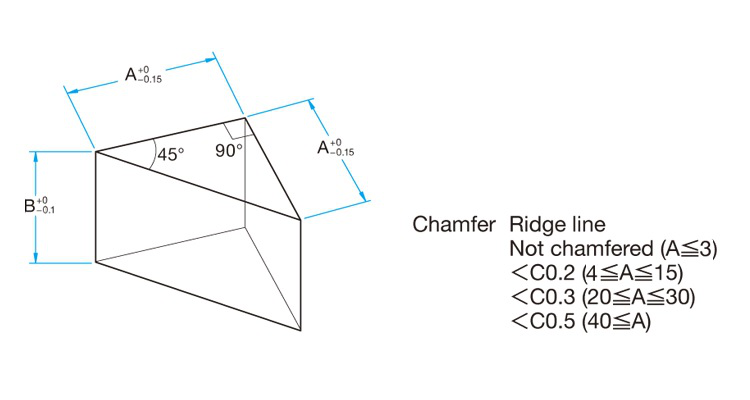 1 、实测的尺寸A包含了倒角部分,所以会比样本值稍小。尺寸公差由斜面和两个底面所成三角形而定。