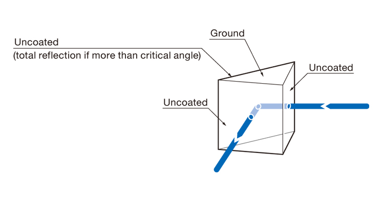 5 、在没镀膜斜面上有指纹或其他脏物的话,入射角即使大于临界角,也可能不发生全反射。请注意,没镀膜的斜面不能接触任何东西。
