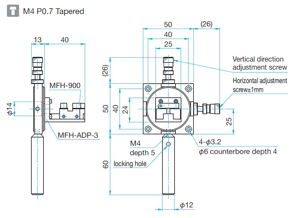 ◦可实现光纤的上下和左右平面内调整的型号,和有可同时实现倾斜调整功能的型号。
