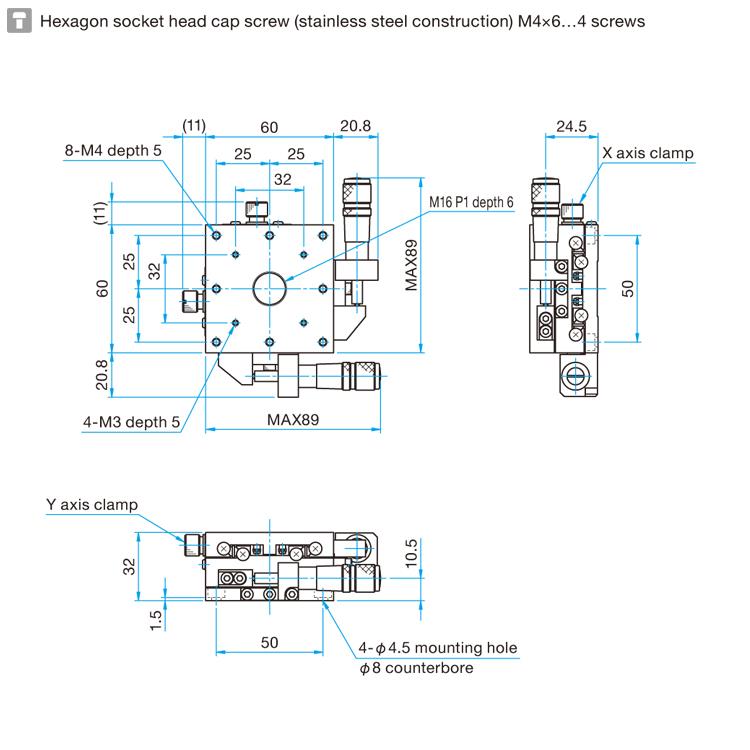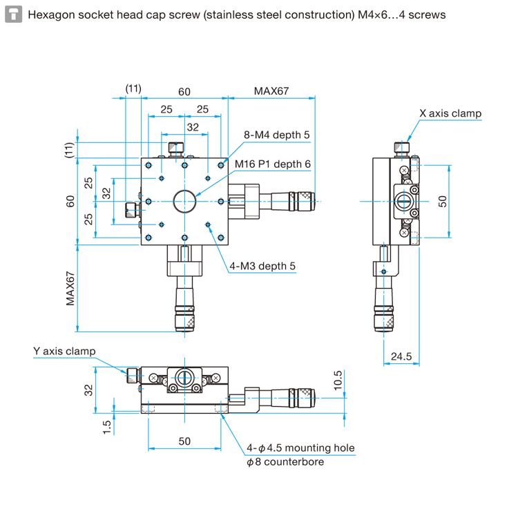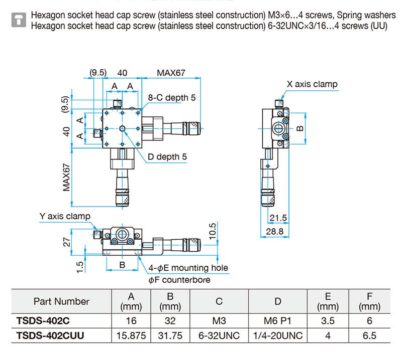 XY轴不锈钢平台与TSD系列具有相同的结构和性能,适合在超净室或真空环境使用的直动平台,全部使用的材料都是不锈钢,耐腐蚀性能优良,平台本体和微分头都使用真空润滑油脂。