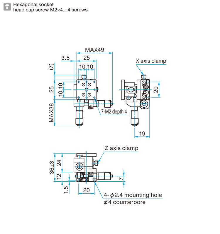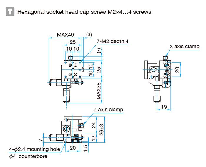 4.型号末尾为FP的产品,采用的是精密调整螺杆,请注意不是一般的微分头。精密调整螺杆的螺距为0.25mm,在操作时请使用六角扳手或另售的六角手轮扳手