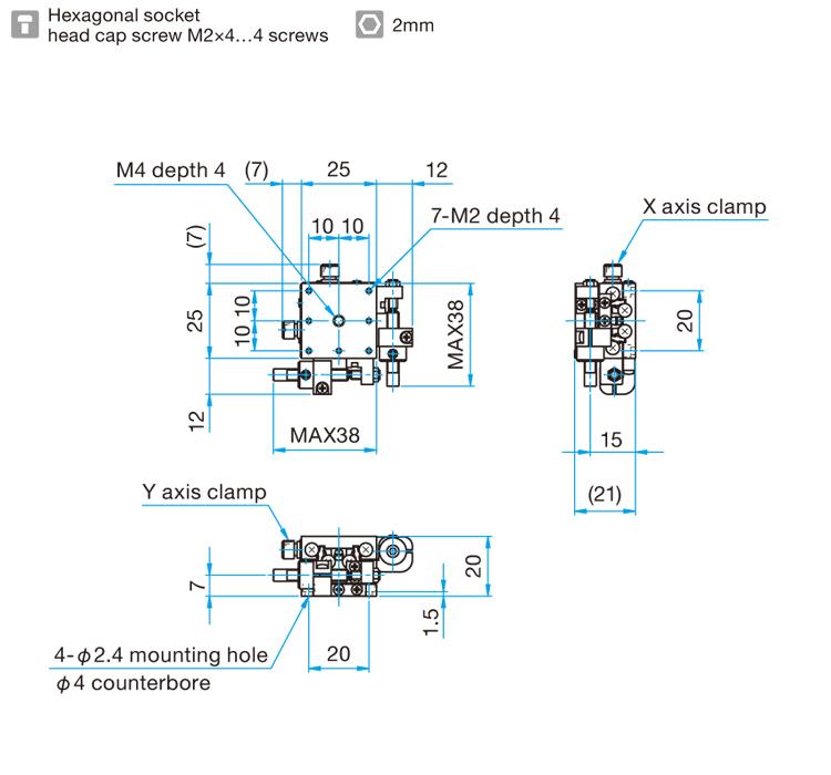 4.型号末尾为FP的产品,采用的是精密调整螺杆,请注意不是一般的微分头。精密调整螺杆的螺距为0.25mm,在操作时请使用六角扳手或另售的六角手轮扳手(KCL)