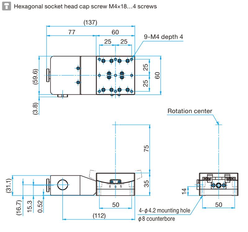 自动摆动平台-5相步进电机(α轴)采用了十字交叉滚柱导轨 结构的步进电机型自动摆动平台,十字交叉滚柱导轨结构,耐磨损性好,刚性高,摆动中心高度有75mm,100mm和130mm,此款电控位移台是西格玛光机的产品。
